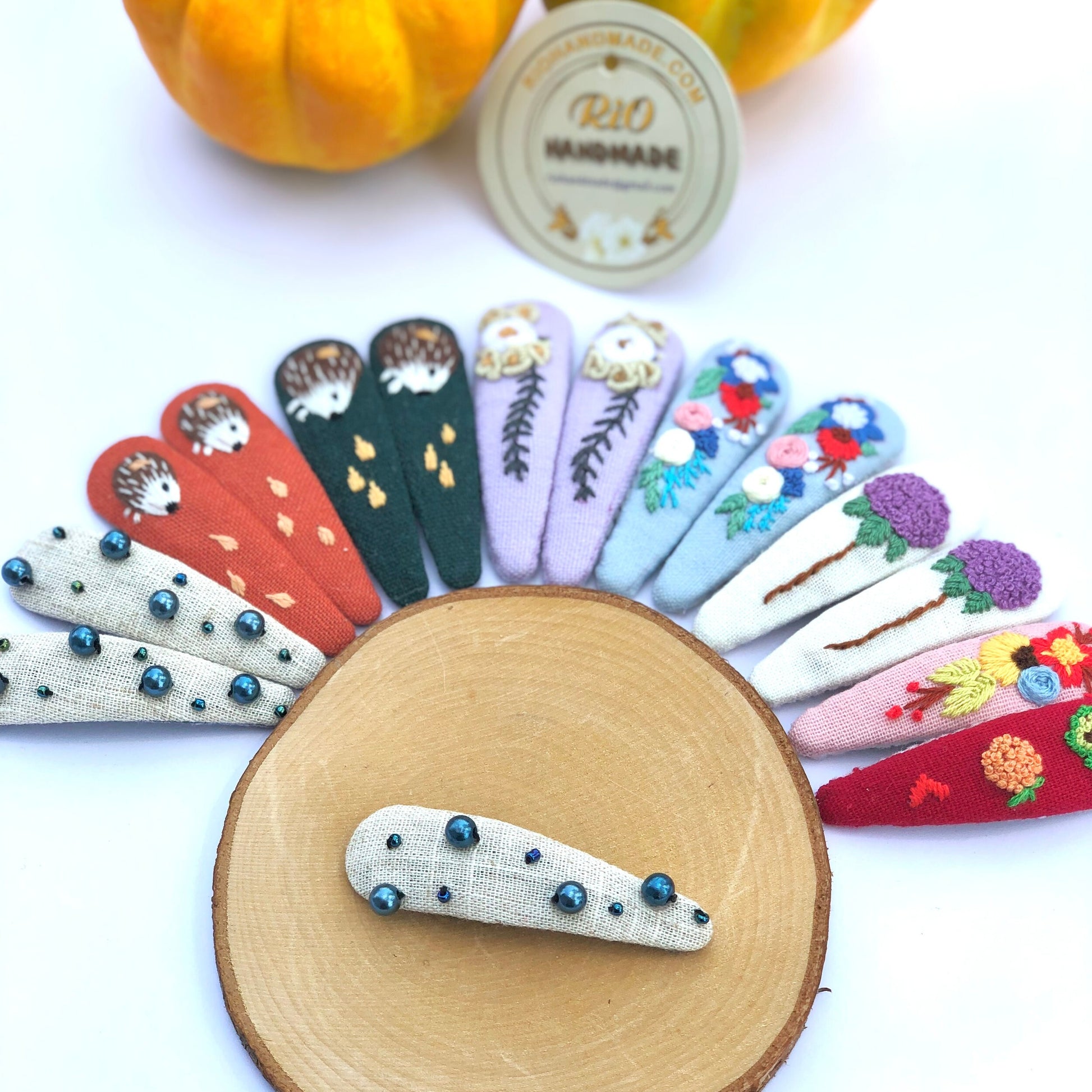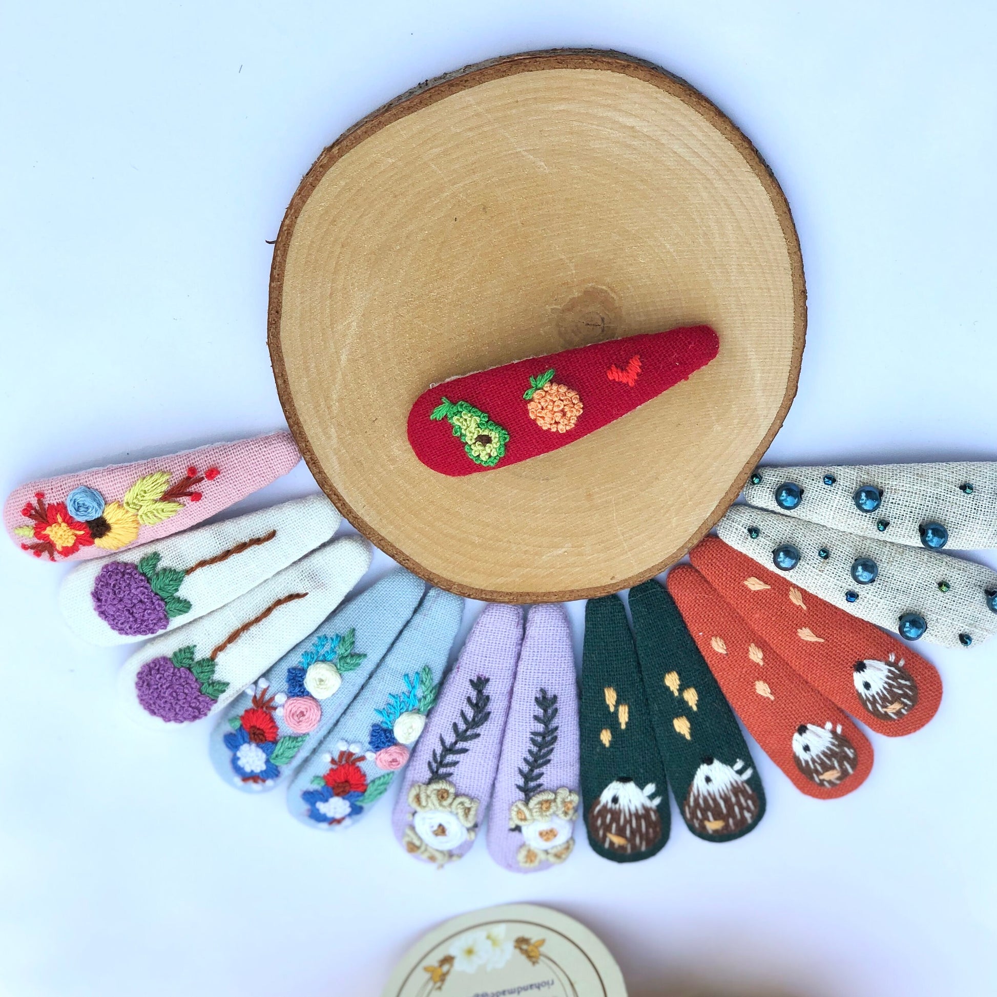 The lovely hair clips made of linen is a need for your girl's outfits. They are trendy and feminine. The perfect fit for any child. You use them for holding bangs back
