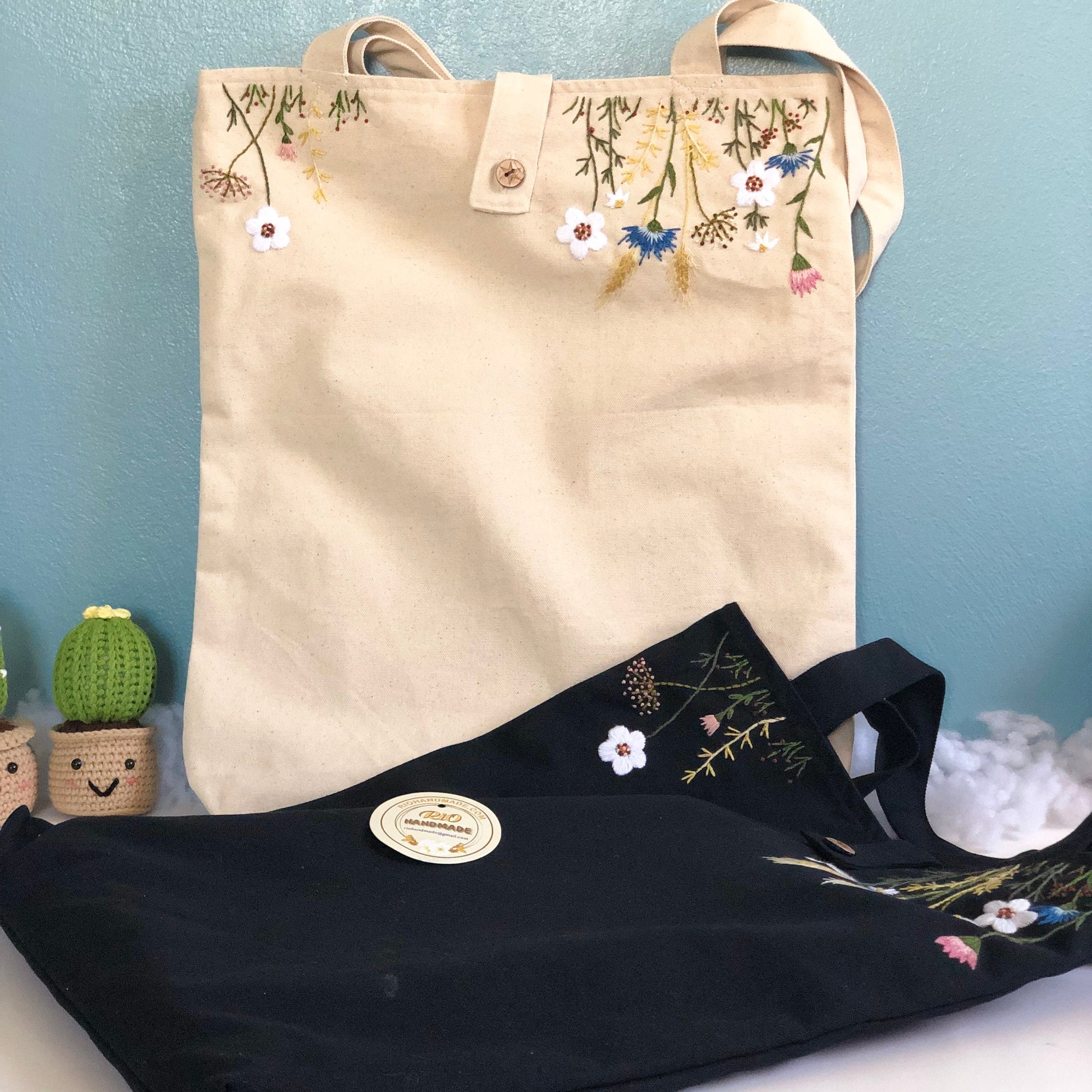 ❤ The embroidered tote bag is sewn from the natural and environmentally friendly linen.